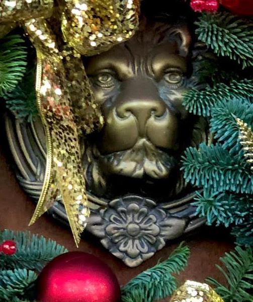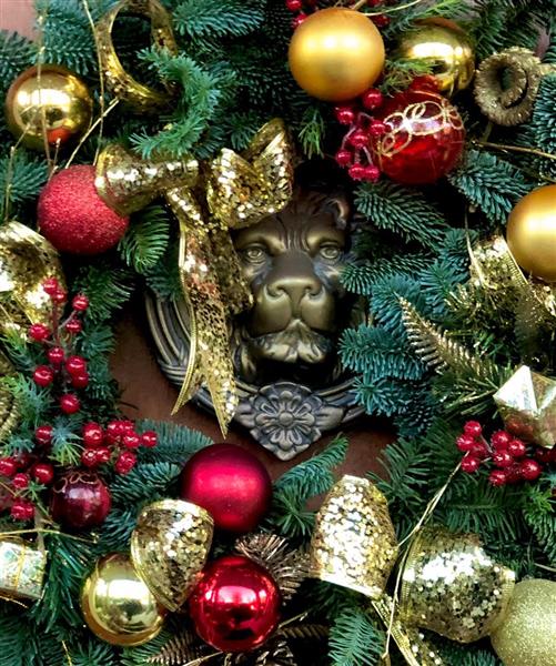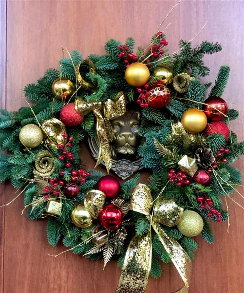 Adorn your home with our luxurious Christmas wreath, featuring glossy gold and red baubles, twinkling golden spirals, and clusters of vibrant red berries. Delicate pine cones and golden bows add a touch of rustic charm, while the majestic lion’s head at the centre creates a regal focal point. Perfect for your front door or as a stunning centrepiece, this wreath brings timeless beauty and festive spirit to any space. Celebrate the season in style!